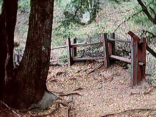 The trail becomes indistinct and drops down to the base of Goat rock. After a short scramble across the rocks the trail heads back up the other side of the stony promontory. A small wooden fence is soon reached and the top of Goat rock is reached. From here a trail can be found which will lead to a fine observation point.